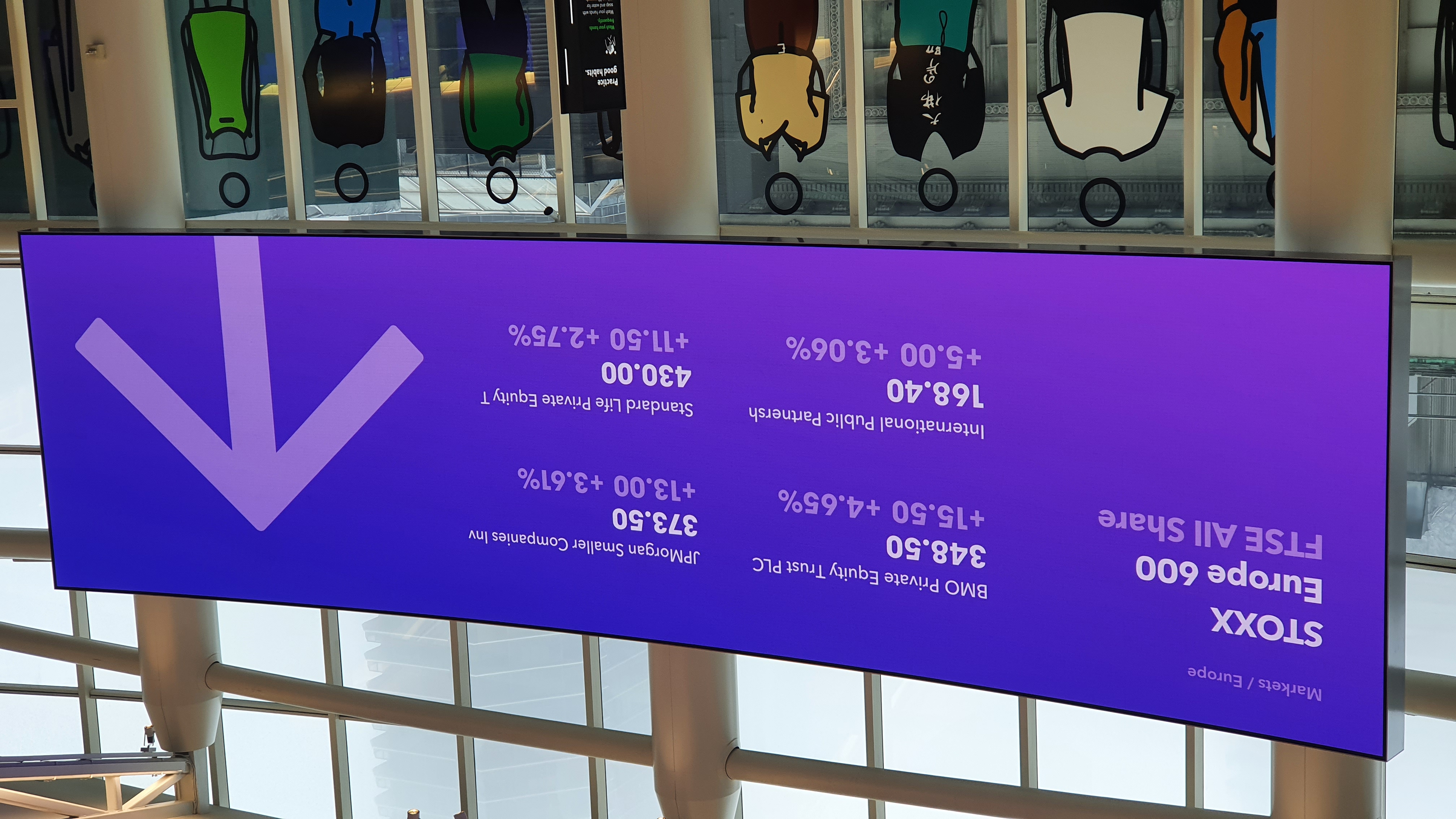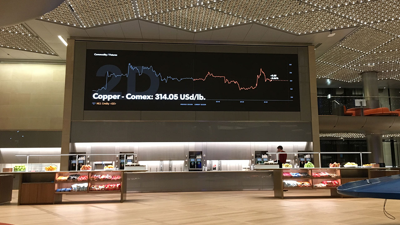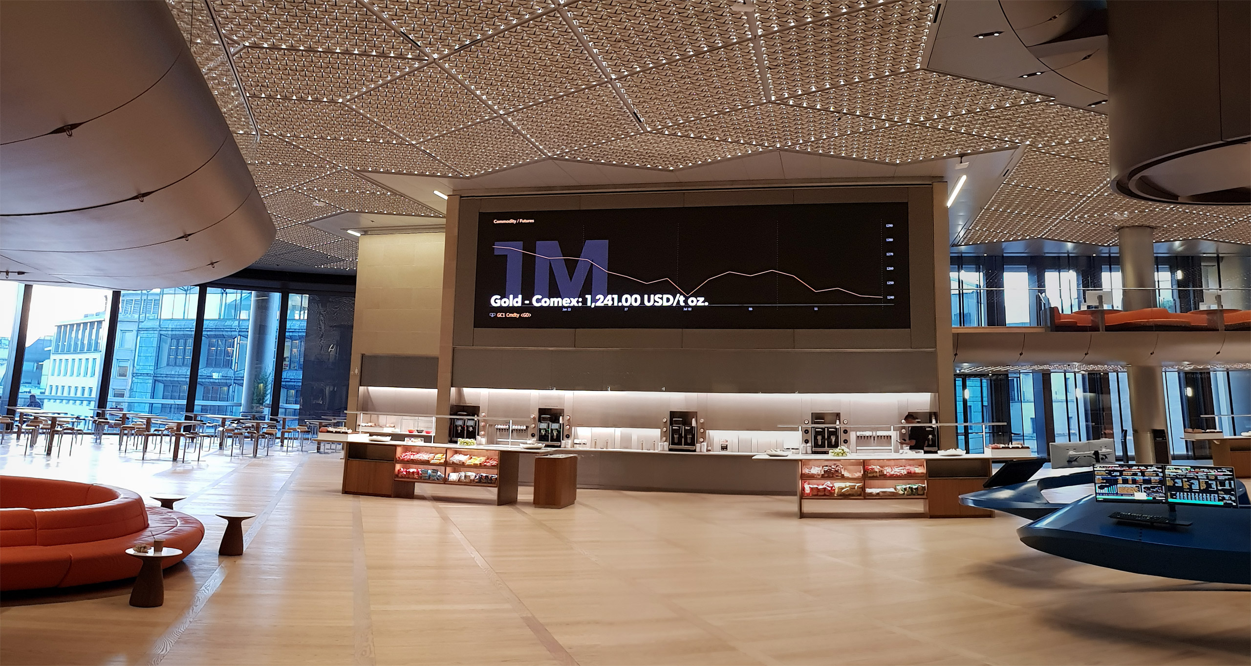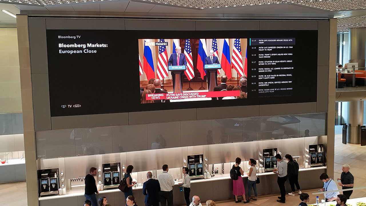 The European headquarters of Bloomberg in London includes a large LED screen installation. Designate conceptualized and developed the system architecture for the digital signage solution, based on real-time design and authoring software. Designate supported the designers and developers at Bloomberg to create a custom-based solution integrating various feeds, images, videos and motion graphics.