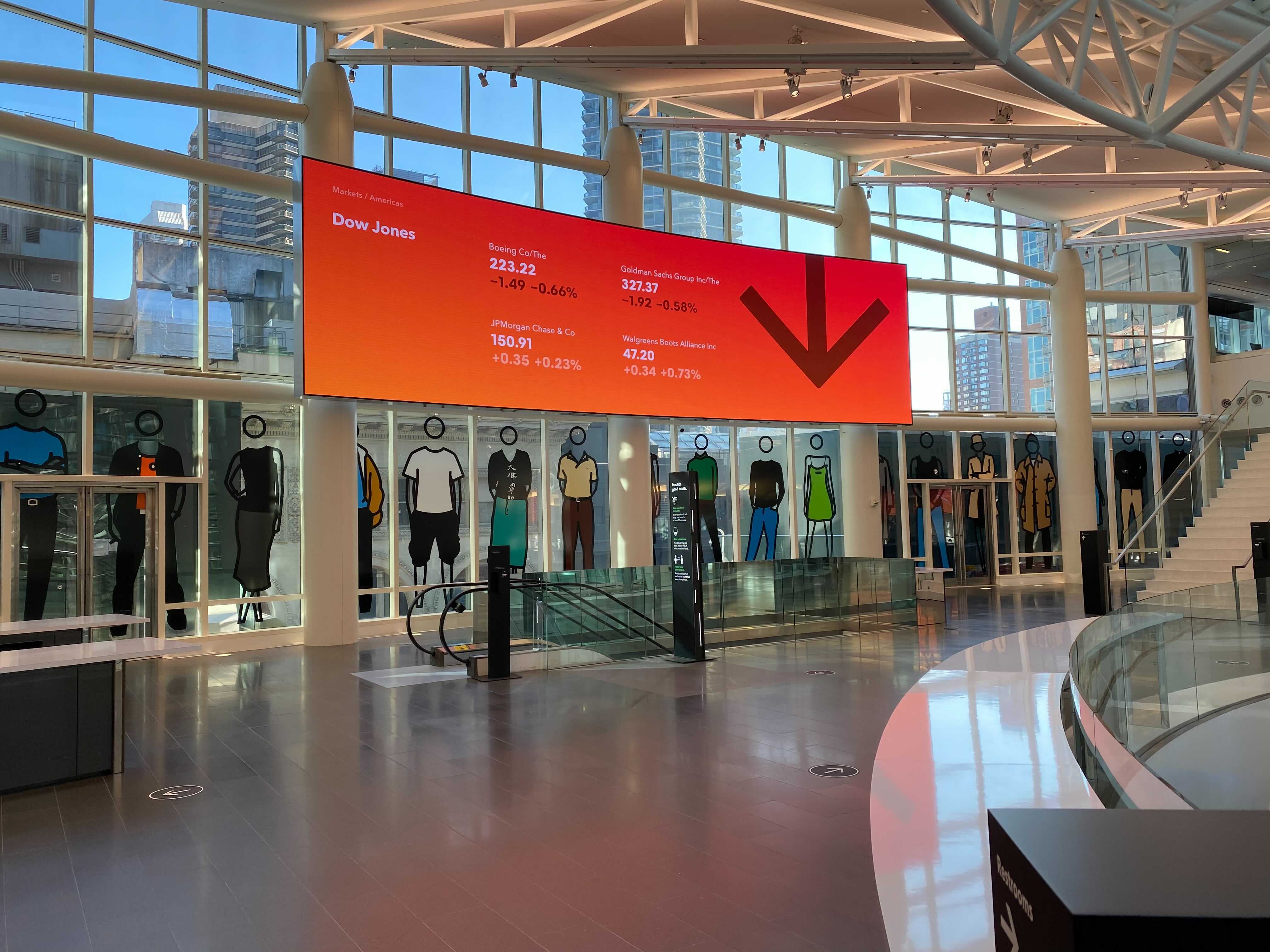 Standard turnkey signage solutions offer limited flexibility when it comes to content, data integration and visual fidelity. We conceptualize and implement custom Digital Signage design and playout solutions based on existing or new Content Management Systems. Using broadcast quality production and rendering technologies, we combine real-time 2D/3D motion graphics and traditional video footage with live data and playback control to create bespoke signage solutions for small and large long-term installations.
