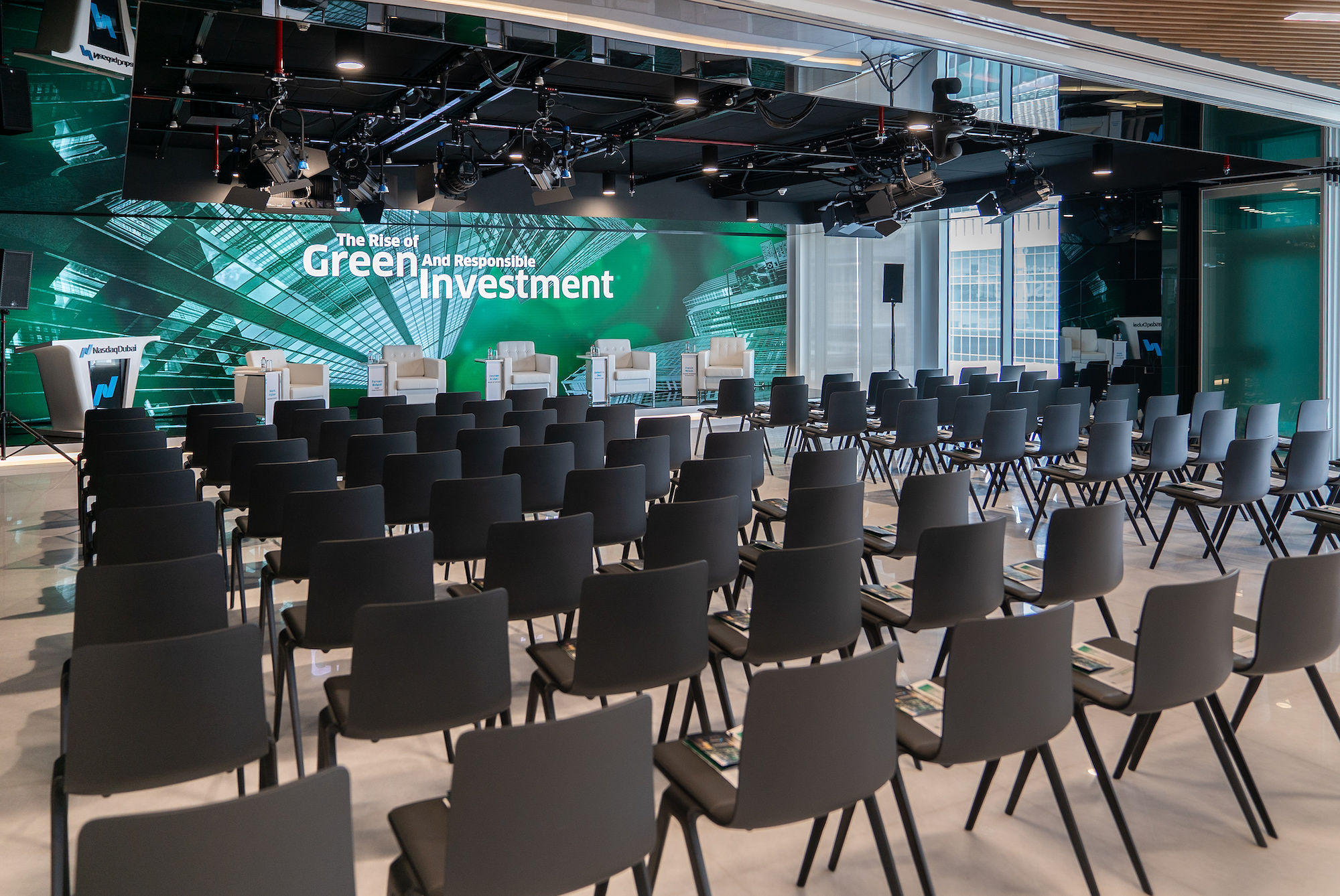 Nasdaq Dubai's new offices in the Dubai International Financial Centre (DIFC) include MarketSite, an event space for market-opening bell ringing and seminars by issuers and other companies including CNBC's new Dubai studio. 3Monkeys hired us to oversee the design of the content for the 24/7 signage and event channel running on the MarketSite LED wall.