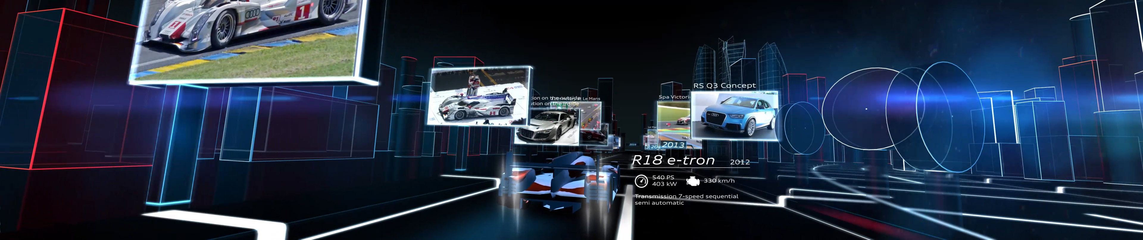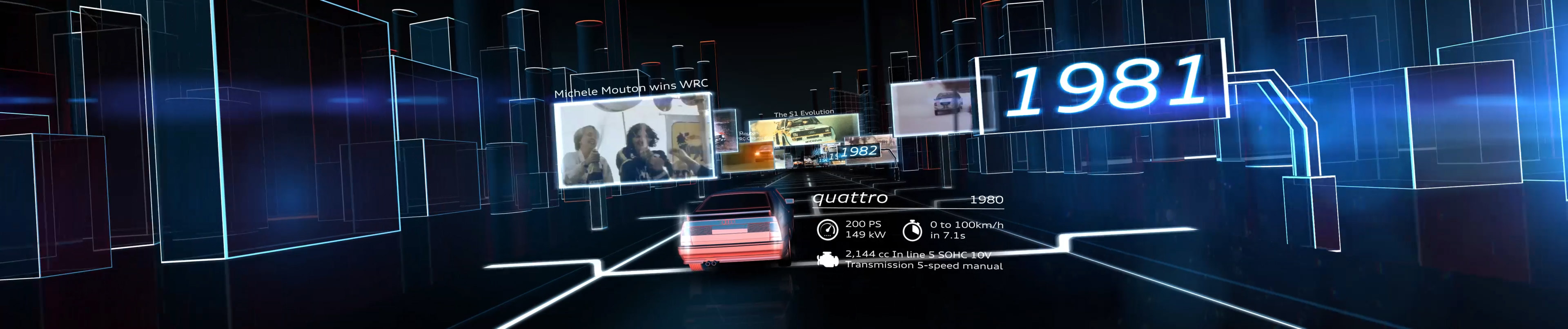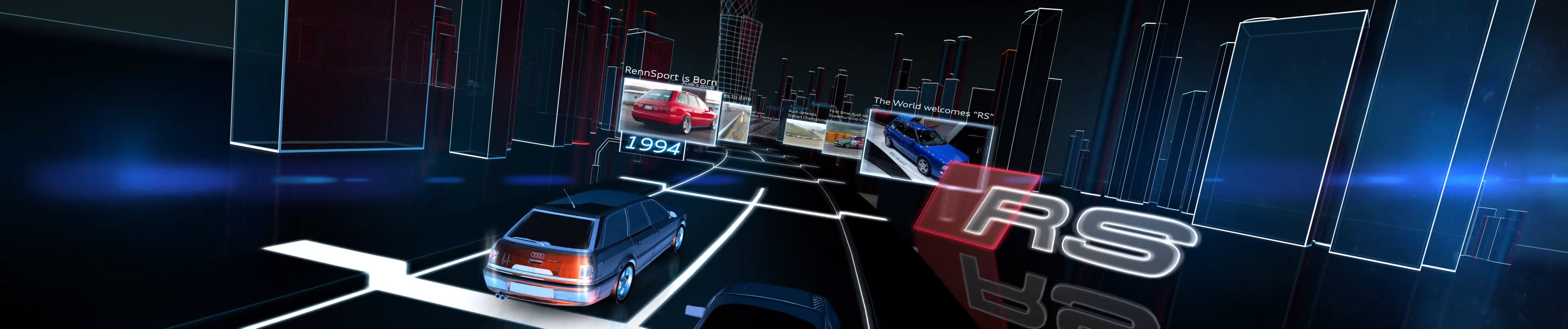 For the opening of the world’s first Audi Sport showroom in Abu Dhabi, we created the launch animation that illustrates the history of Audi Sport, starting with the first Audi Quattro. 3D models of classic Audi cars and iconic Abu Dhabi Buildings were inserted in a virtual city filled with dozens of videos and images.
