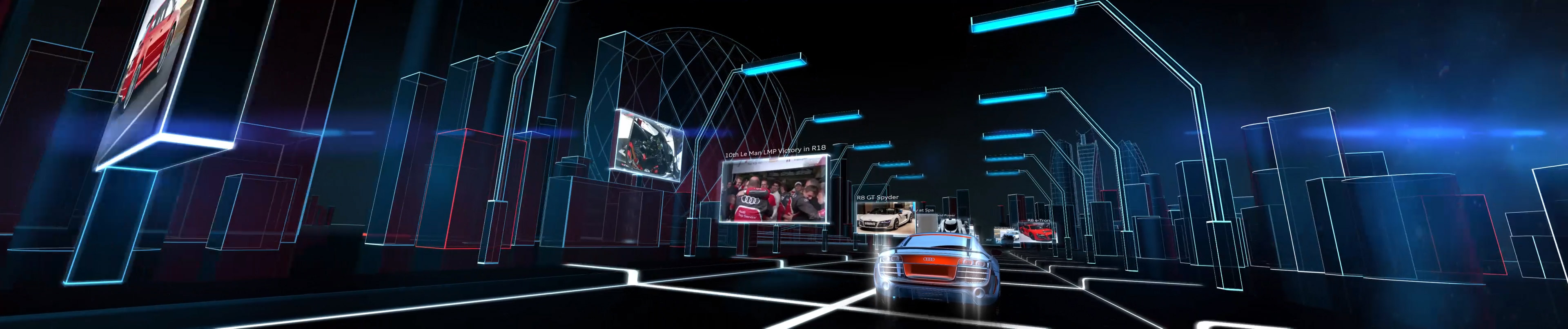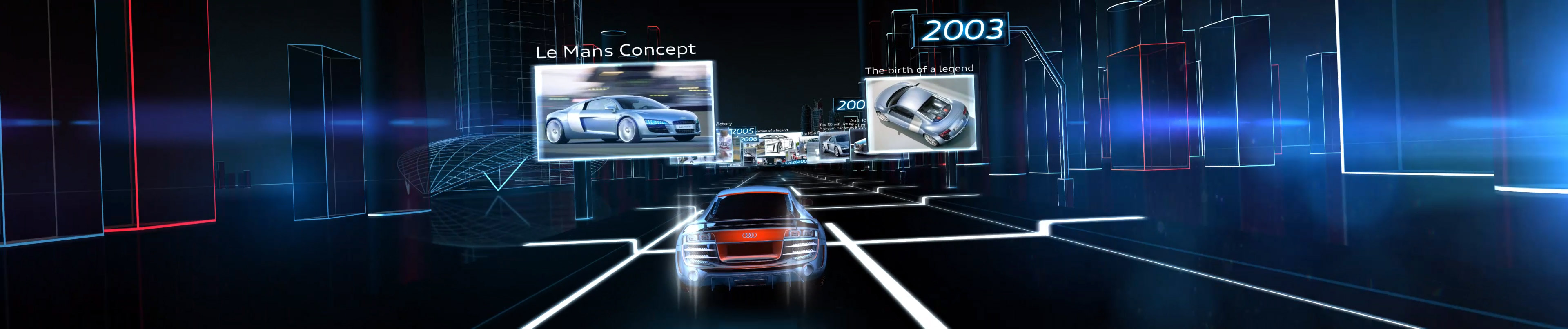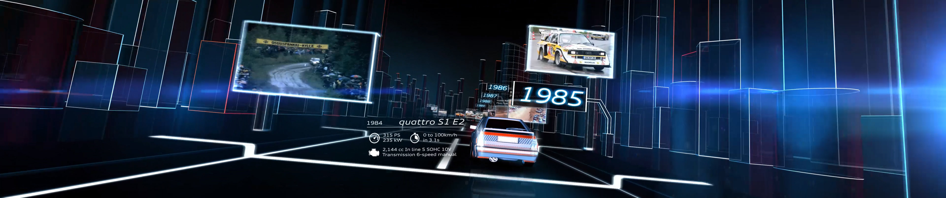 For the opening of the world’s first Audi Sport showroom in Abu Dhabi, we created the launch animation that illustrates the history of Audi Sport, starting with the first Audi Quattro. 3D models of classic Audi cars and iconic Abu Dhabi Buildings were inserted in a virtual city filled with dozens of videos and images.